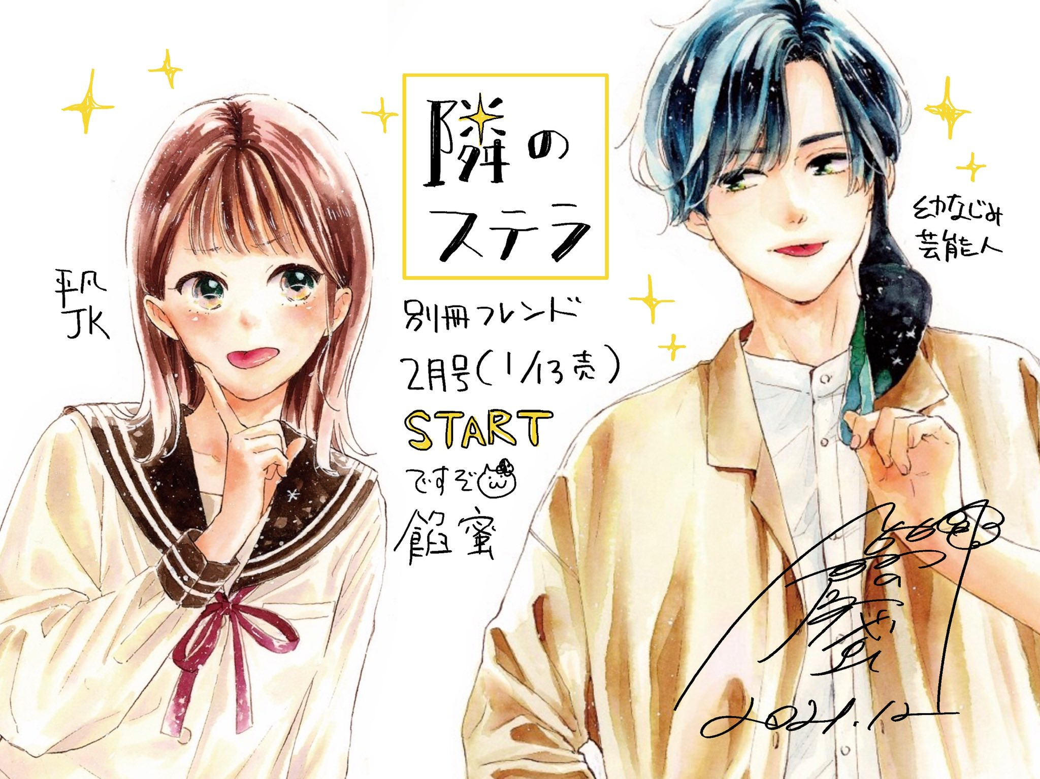 Schöne Neuigkeiten für alle Fans von Ammitsu, denn die »Ran the Peerless Beauty«-Schöpferin startet in der kommenden Ausgabe des »Bessatsu Friend«-Magazins, das am 13. Januar 2022 erscheinen wird, mit »Tonari no Stella« eine neue Romance-Reihe. Die Geschichte handelt von einem normalen Mädchen und ihrem Kindheitsfreund, der ein Schauspieler ist.
