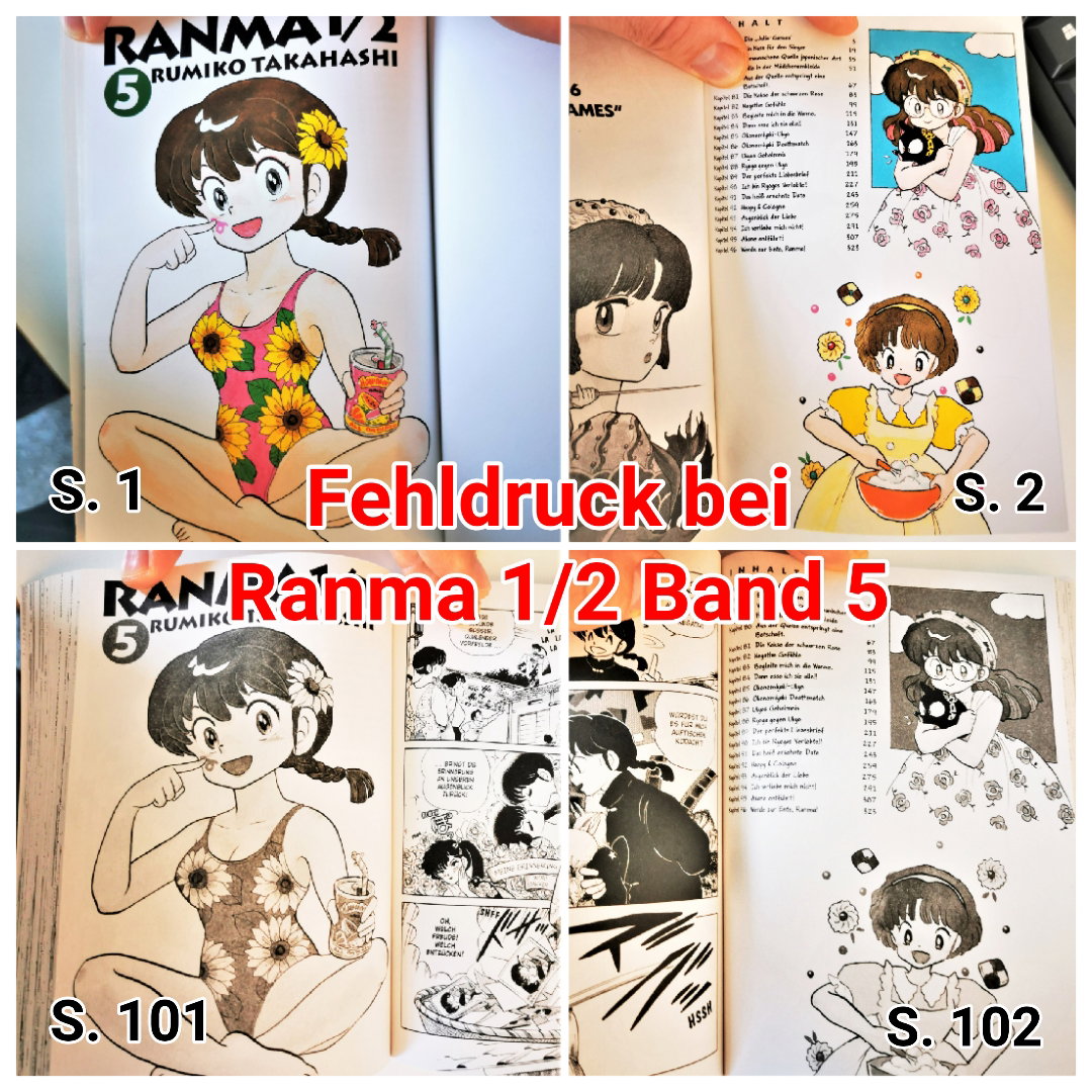 Am 8. Mai 2023 kam der fünfte Band der New Edition von »Ranma 1/2« offiziell in den Handel und sorgte sogleich für etwas Verwirrung. Denn die Titel- und Inhaltsseite wurden nicht nur auf den ersten zwei Seiten, sondern auch auf den Seiten 101 und 102 abgedruckt – dadurch fehlen die richtigen Seiten. Nach Angaben des Egmont-Verlags befinde sich Band 05 bereits im Nachdruck und soll ab Juni wieder verfügbar sein. Fehlerhafte Ausgaben lassen sich bei den jeweiligen Händlern zurückgeben oder umtauschen. Wer das Buch im verlagseigenen Webshop bestellte, soll sich an shop@egmont-shop.de wenden.