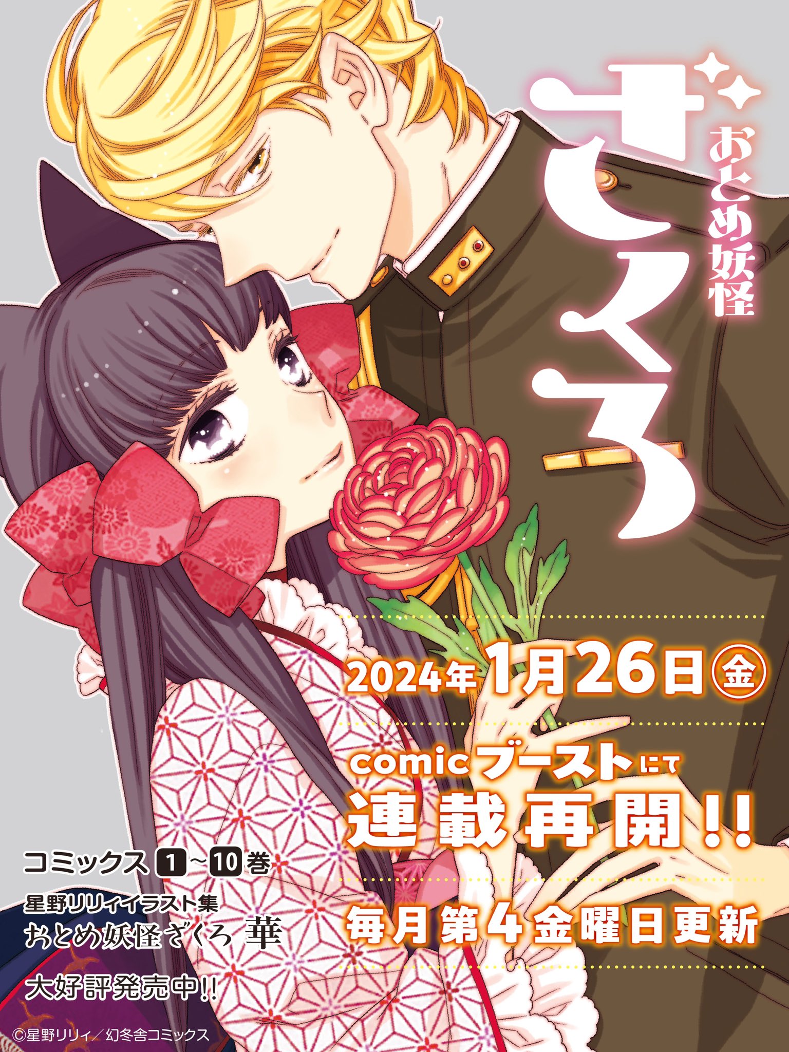 Im April hatte Gentōshas »Comic Boost«-App erstmal über eine Fortsetzung der Reihe ab Herbst 2023 berichtet. Gut ein halbes Jahr später steht mit dem 26. Januar jetzt ein finales Datum der Rückkehr fest. Hinter dem Werk steckt Lily Hoshino, die den Manga seit 2006 bei Gentōsha unter dem Originaltitel »Otome Yōkai Zakuro« veröffentlicht. In 2019 kam ihr zweites Kind zur Welt.