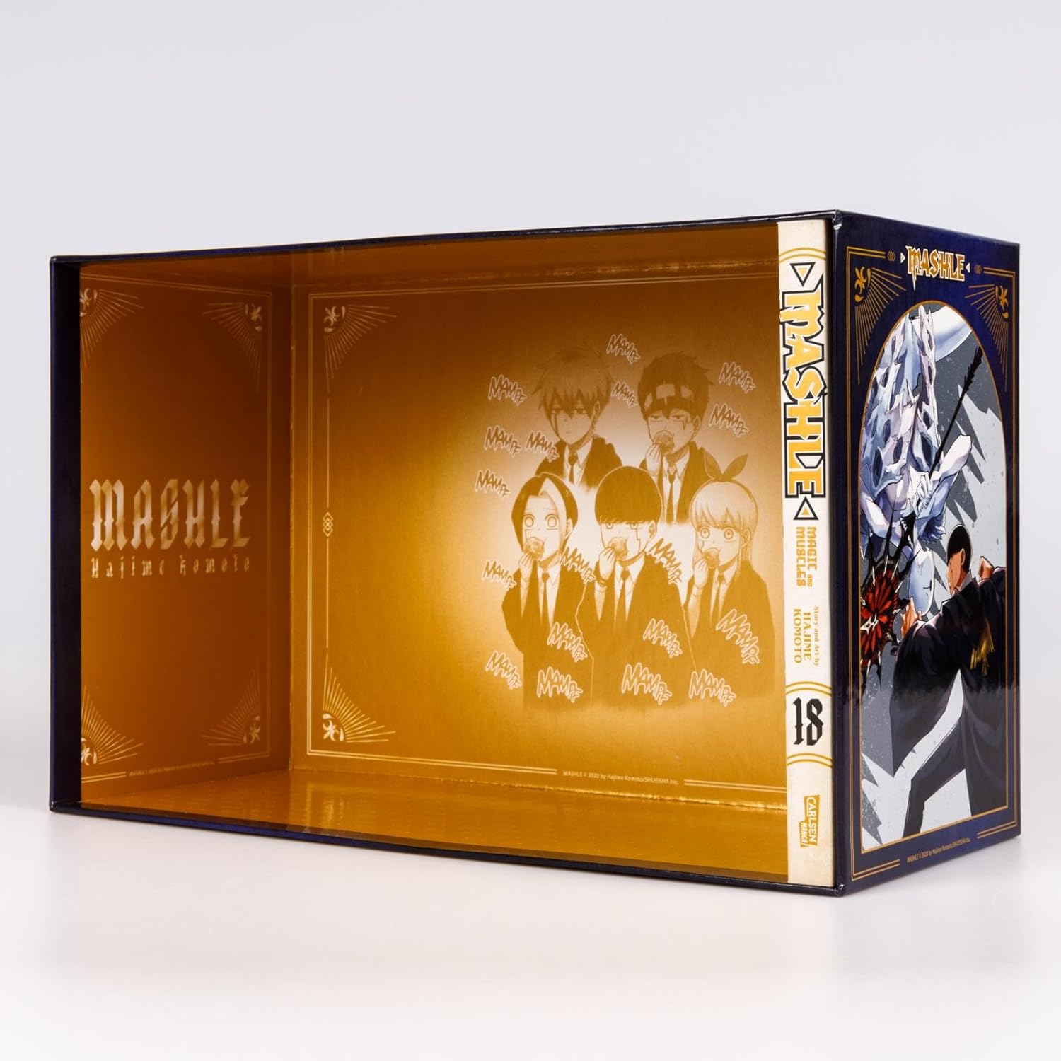 Ab dem 1. Juli 2025 ist Band 18 von »Mashle: Magic and Muscles« in zwei Varianten erhältlich: einmal als regulärer Band und einmal im Schuber. Die Schuber-Edition mit Extra kostet 14,90 Euro. Wer die komplette Reihe auf einen Schlag möchte, kann zum gefüllten Vollschuber mit allen 18 Bänden und Extra greifen – dieser ist für 139,00 Euro erhältlich.