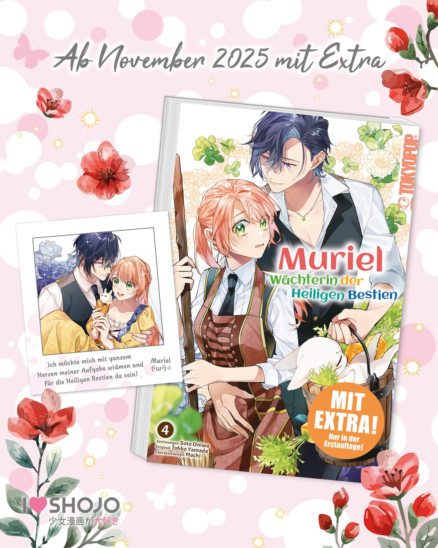 Seit dem 12. November 2025 ist der vierte Band von »Muriel – Wächterin der Heiligen Bestien« für 7,50 Euro als Printausgabe im Handel erhältlich. Käufer der Erstauflage erhalten eine »My Shojo Moments«-Fotokarte als exklusives Extra. Weiter geht es voraussichtlich am 11. Februar 2026 mit dem fünften Band.