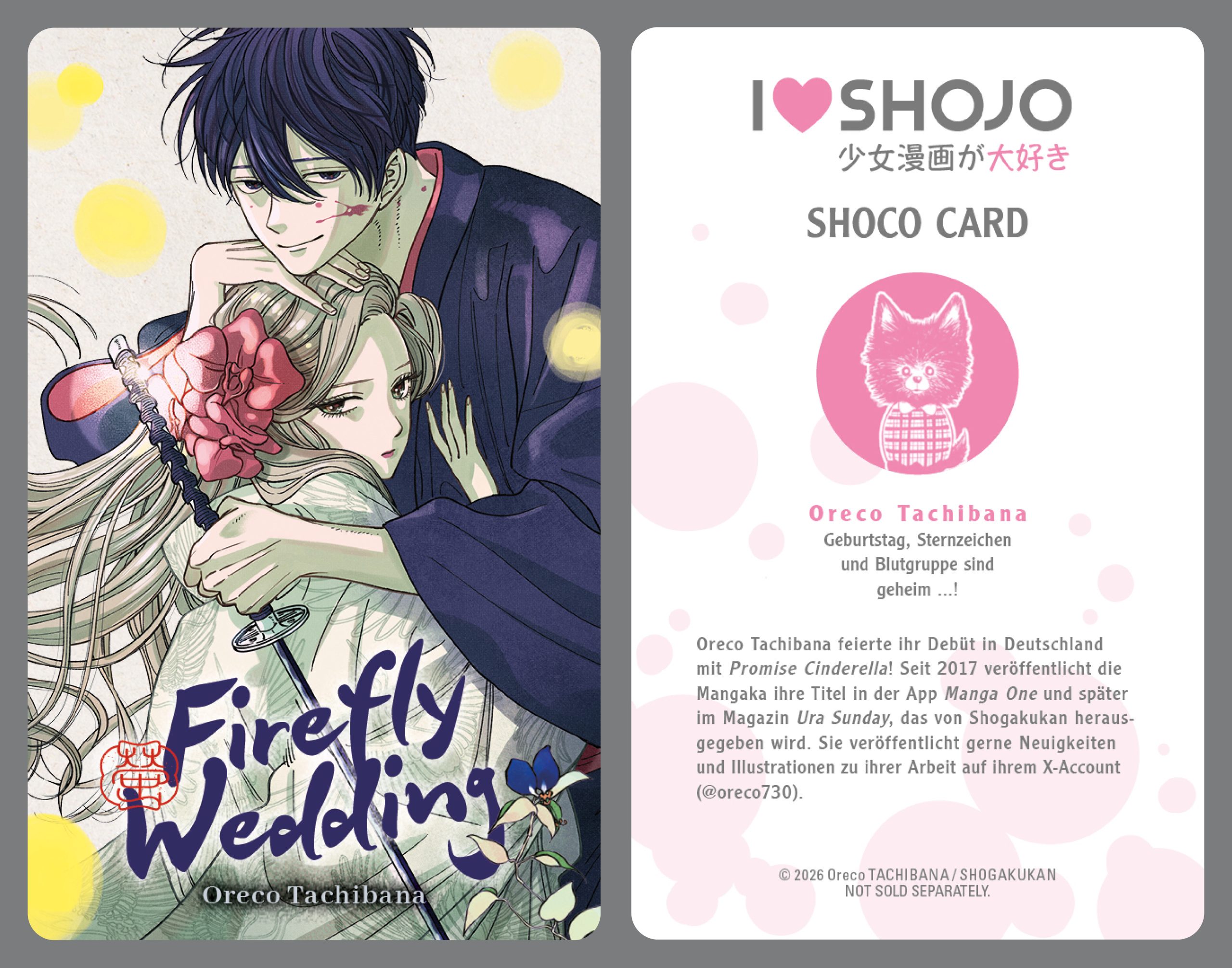 Der neue Hit von »Promise Cinderella«-Mangaka Oreco Tachibana hat endlich im Programm von TOKYOPOP angelegt. Mit emotionalem Funkenflug und ShoCo Card in der Erstauflage ist der Auftakt zum historischen Liebesdrama »Firefly Wedding« (jap.: »Hotaru no Yomeiri«) erhältlich.